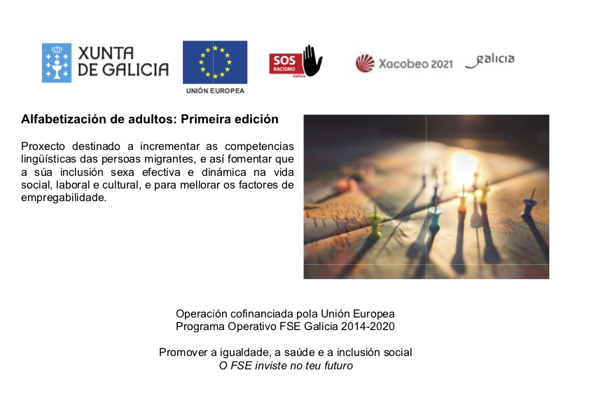 Formación dirijida a personas inmigrantes que poseen un desconocimiento de la lengua y que constituye la primeira barrera para poder participar en los procesos sociales.